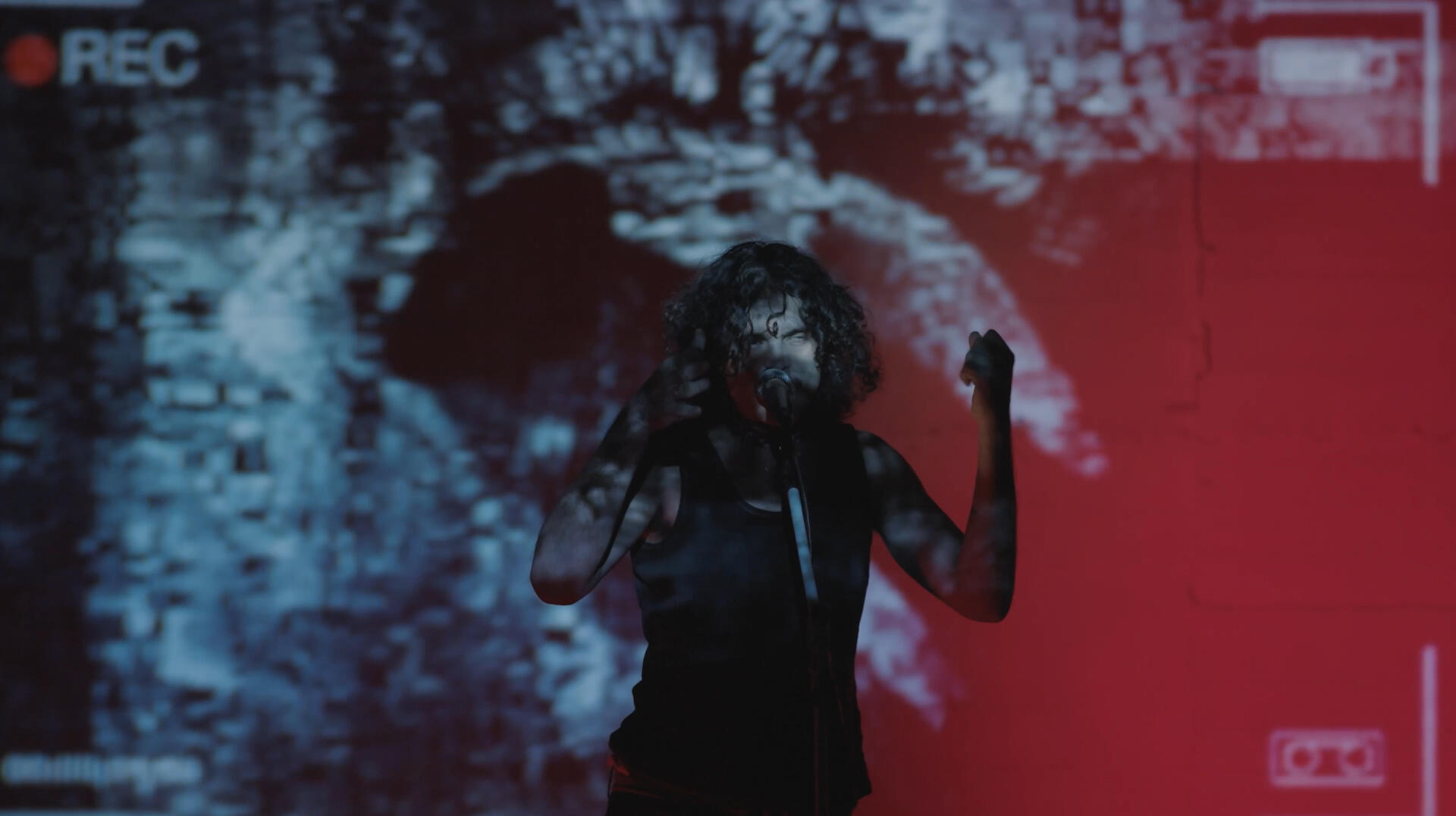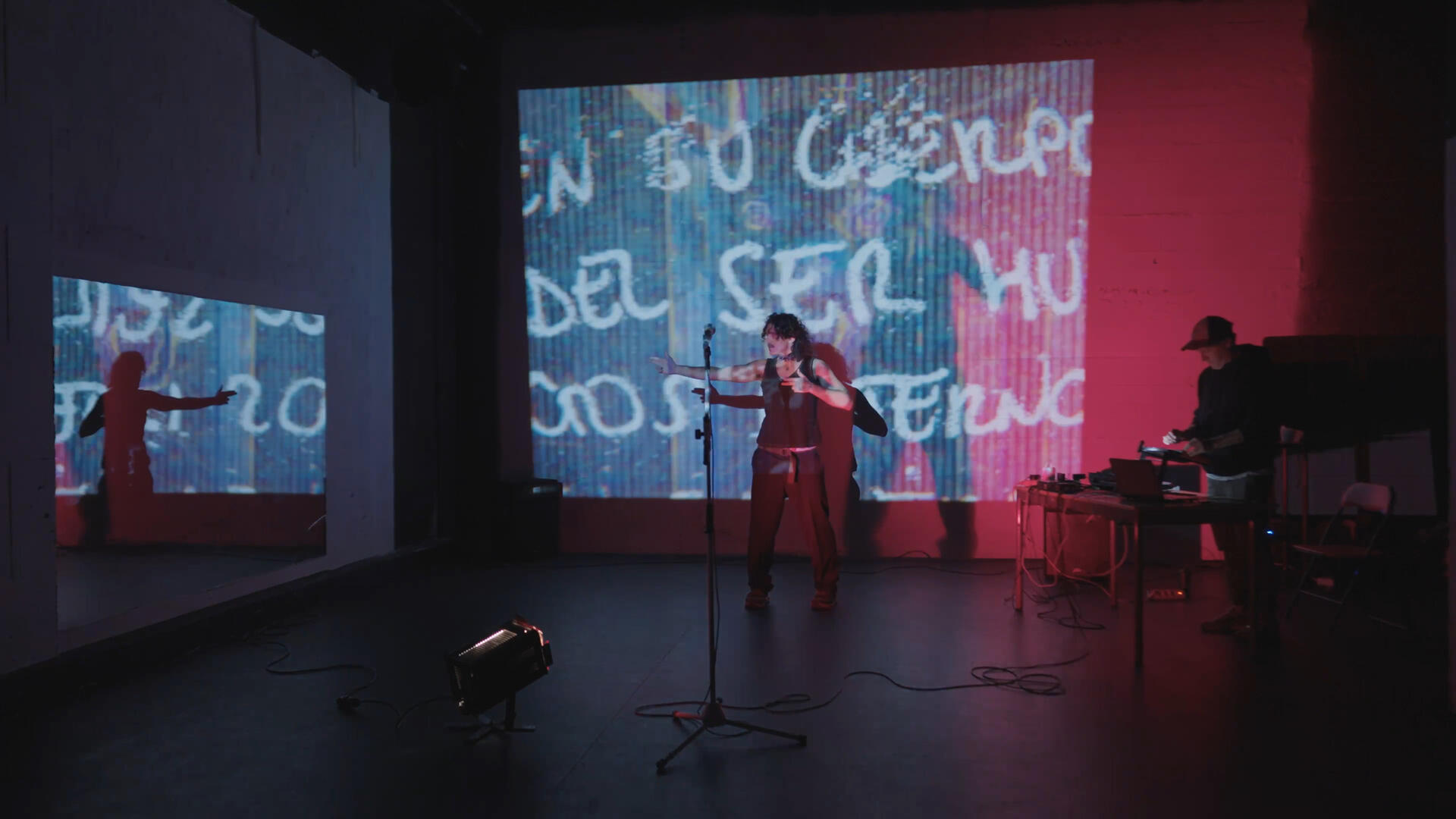 Como el sueño de un perro, «LaCruz» es un viaje en blanco y negro a través de la ruinas de un ego que, tras dinamitar el amor, trata desencantado de renacer en un nuevo «yo», suspendido entre lo espiritual y lo visceral. Durante ese recorrido, Manué, Carlos y Alexis crean un territorio de tensión sostenida entre palabra, imagen y sonido. Una atmósfera de estática, sombras y pensamientos en voz alta que acorralan y encarcelan al público, obligado a habitar la encrucijada vital en las palabras de Manué y a hilar su sentido desde la experiencia corporal propia, mediada por un audio y video entregados en papel de lija.A lo largo de sus cinco actos, «LaCruz» se abre como un atlas íntimo y atonal, donde la felicidad es apenas un destello (una promesa etérea) que oxida los pensamientos de un ser crujiendo su imago. En ese espacio de vulnerabilidad, recitado poético y performance funcionan como rituales de tránsito: con toda su chulería revelan la fragilidad del ego masculino, pero también la posibilidad de su transformación — aún perdido en la caja de ecos deformados por su propia oscuridad.El resultado es una experiencia sonovisual inmersiva y constantemente en evolución, hecha de contradicciones sobre el yo, lo ya escrito, lo recién vivido y lo encontrado en el camino. «LaCruz» es una mutación continua. Formalmente, un work in progress que adapta su duración a cada espacio: una digresión low-fi abierta en canal que no pretende explicar, sino activar. Narrativamente, un proceso de exposición sin mostrar (Soy todo misterio), de despojo y de renacimiento, donde cada espectador se convierte en los ojos, oídos y sesos que completan esta confesión autoredentora con signo de interrogación en su punto final.